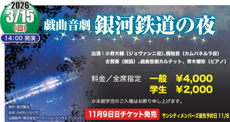戯曲音劇「銀河鉄道の夜」再演決定!!